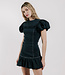 The Adele Mini Dress in denim is a playful yet structured piece, featuring bold puff sleeves, contrast stitching, and a ruffled hem for a feminine finish. Effortlessly chic for day-to-night styling.