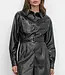 This dress is crafted from a high-quality vegan leather in a classic black color. It features a flattering shirt dress silhouette with a point collar, a full button-up front, and a self-tie belt to cinch the waist. Read more..