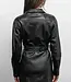 This dress is crafted from a high-quality vegan leather in a classic black color. It features a flattering shirt dress silhouette with a point collar, a full button-up front, and a self-tie belt to cinch the waist.