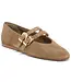 BAYLEE GROMMET makes a statement out of her double strap mary-jane design with gold metal grommets and bold buckles. This sustainably-crafted flat boasts sustainable materials in perforated suede for one on-trend and versatile ballet flat.