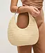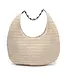 *Exterior Details: Slouchy crescent hobo silhouette with open-weave straw-style texture and a statement rhinestone top handle. Silver-tone hardware accents