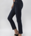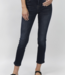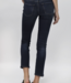 Ankle inseam on comfort stretch denim accented with 3D hip & back knee whiskers, inseam chevrons, pocket grinding, buttery soft & dark indigo shade w/slubby characteristics.