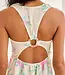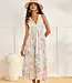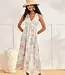 Floral and jacquard print midi dress. V-neck. Crisscross elastic back joined with a resin piece.