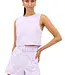 Elevate your wardrobe with the EVERLY TANK, a sophisticated cotton piece featuring delicate diamond embroidery and lace scallop trim. The cropped, boxy silhouette offers modern comfort with a rounded neckline designed to work seamlessly with your favorite bra. Center back button closure adds refined detail, while full lining ensures coverage and durability. Pair with the matching Tracy Shorts for a matching set.