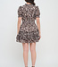Embody the fierce, untamed spirit of Artemis on a moonlit hunt with the Gold Feline Puff Sleeve Short Dress. It's a piece that radiates a bold, divine femininity.