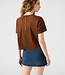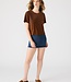 This EZRA faux-suede short-sleeved top features a sleek zip-up design at the back, combining modern style with easy wearability. Its soft texture and tailored fit make it a versatile piece for sophisticated casual looks. Ideal for layering or wearing alone, it offers both comfort and a polished finish.
