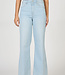 Fiona high rise jean with a stylish cut-off hem, showcasing a classic railroad stripe design.