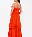 Your new flowy favorite for hot summer days! Adjustable straps meet a sweetheart neckline and sweet front ties for a functional, feminine fit. Finished with tiered ruffle detailing, it’s an easy step up from your everyday maxi!