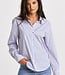 Button down shirt in stripe repeats, long sleeve button front finished with cuff band, side slit, back yoke & curved hi-low hem.