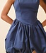A sleeveless mini dress featuring a structured bodice, dramatic bubble hem, and lace-up back detail. Made from crisp cotton-blend for a voluminous silhouette with a modern twist.