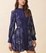 A button-front mini dress showcasing an allover botanical line print. Designed with a mandarin collar, defined waist seam for a flattering fit-and-flare silhouette, and long puff sleeves with wide buttoned cuffs. Finished with a softly flared skirt.