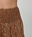 The Isabelle Skirt is one of Love the Label's staple silhouettes. Offered this season in the Cavalier Python print with accents of gold Lurex. The Isabelle skirt has a smocked waist band, ruched tier, and a side slit.