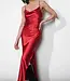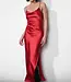 The design features a sophisticated cowl neckline that drapes elegantly across the chest, complemented by delicate spaghetti straps. The silhouette is long and flowing, culminating in a dramatic maxi length that includes a tasteful side slit . Read more..