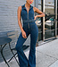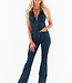 70's sexy in this statement denim jumpsuit! Tight zip up bodice meets a thick retro belted waist and killer wide leg to get you feeling the disco fever. Slight stretch denim will have this fit to perfection.