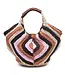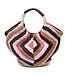 *Exterior Details: Hand-crocheted tote with bold multicolor geometric pattern; faux leather top handle; structured faux leather-trimmed opening