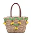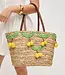 *Exterior Details: Woven straw basket tote with playful lemon-and-leaf crochet trim; double faux leather shoulder straps; natural woven body.