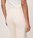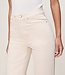 Flax is a warm, off-white denim. It features silver hardware, tonal stitching, a clean hem and an ecru back patch.