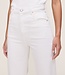 White is a fresh clean denim. It features faux front pockets, a silver shank, copper rivets, tonal stitching, a clean hem and an ecru back patch.