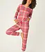 Women’s red pajama pant in peachy jersey with allover plaid print is a drawstring pants with cuffed hems. Pair it with it's coordinating Let's Get Toasty L/S Top