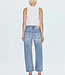 Mid-rise, with a straight leg that bows at the knees for an arched, barrel leg silhouette. Ankle length crop with a clean hem. Bowie is a light wash with lived in fading around the knees and thighs. Read more..