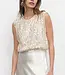 It is covered in shimmering, small sequins in a luminous pearl or off-white color that catches the light beautifully. The top features a crew neckline and a relaxed, voluminous silhouette with a subtle bubble hem that cinches at the waist. Read more..