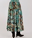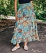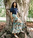 The Luelle Skirt in our Born to Fly print features a flowing tiered silhouette, smocked waist, and striking butterfly wing-inspired patterns in earthy turquoise tones.