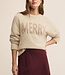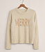 Shimmering metallic yarns elevate this cozy knit with a subtle holiday glow. The "Merry" intarsia detail makes it festive yet wearable beyond the season.