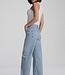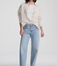 This baggy jean showcases a sophisticated silhouette with a high rise and curved leg. The light vintage wash and elevated design makes these on-trend while easy to wear.