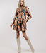 The Rubith Mini Dress, our newest boho mini, is available in a floral print with rich earthy tones. Featuring a high neckline, long puffed sleeves with gathered cuffs, and a dropped waist this dress is the perfect fall transition piece.