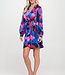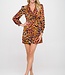 This eye-catching wrap dress features a vibrant leopard print or paint strokes of blue and purples.